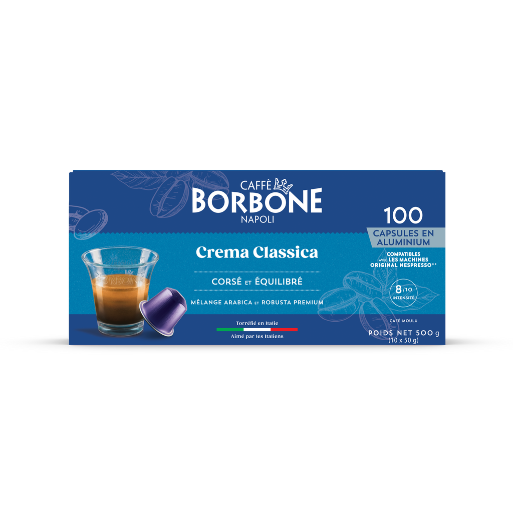 CAFFE BORBONE Mélange Crema Classica - Capsules en aluminium compatibles avec les machines Nespresso®* - 100PK - ALUMINUM PODS