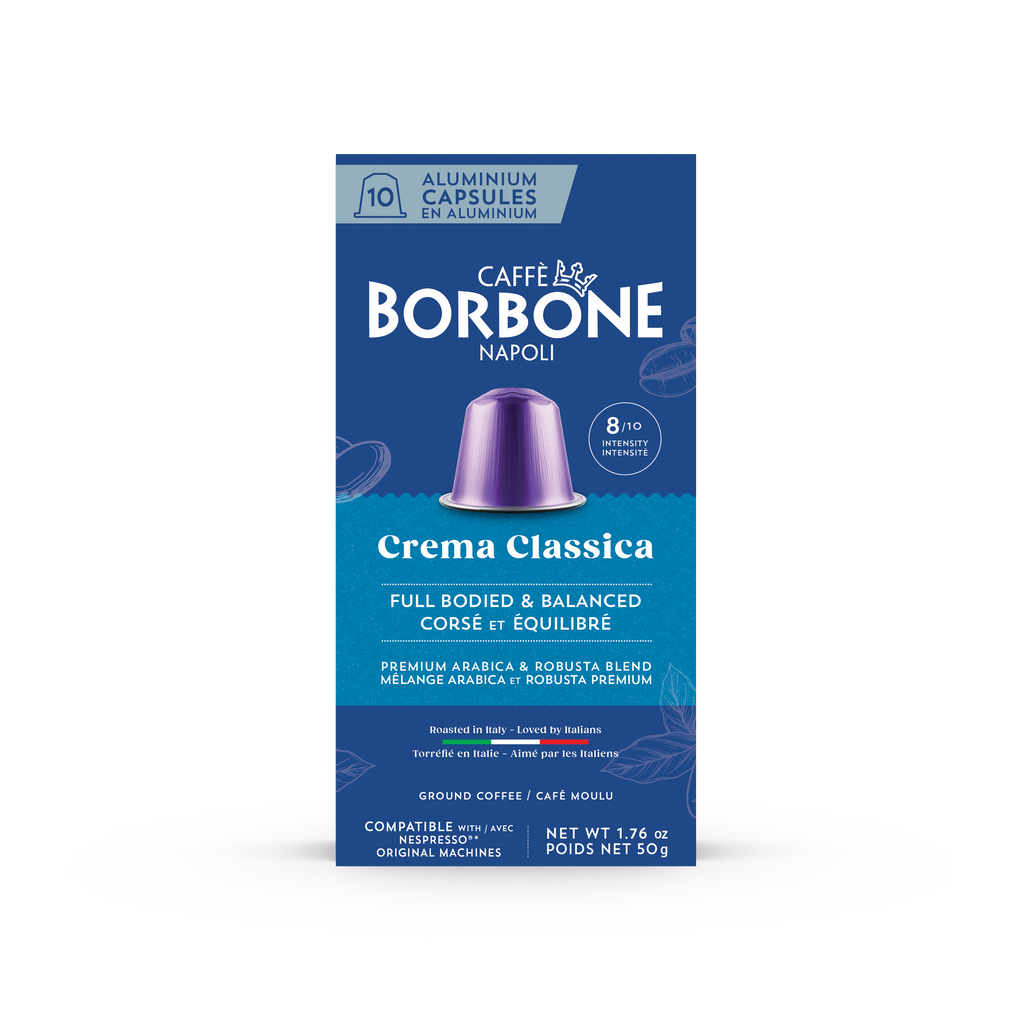 CAFFE BORBONE Crema Classica Blend - Aluminum Nespresso®* Machine Compatible Capsules - 10PK - ALUMINUM PODS