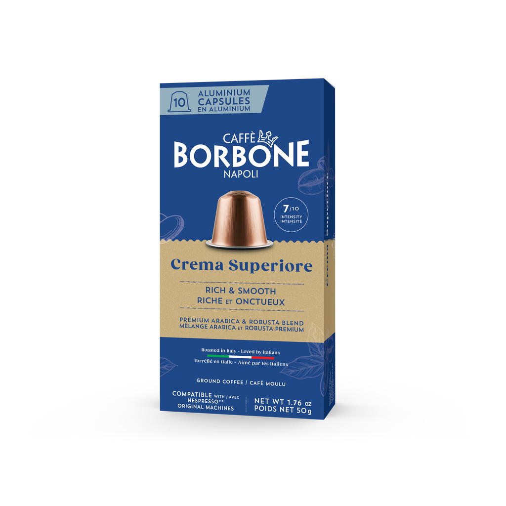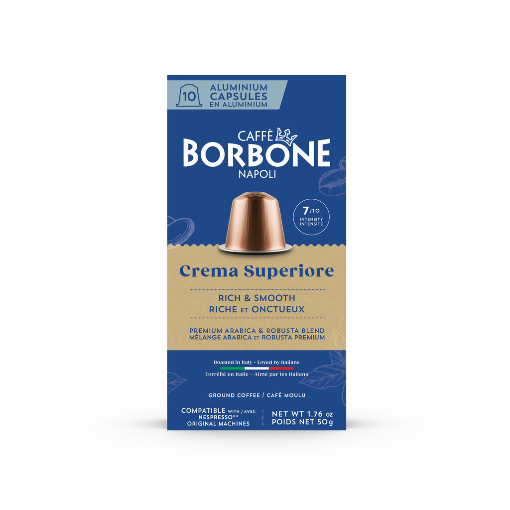 CAFFE BORBONE Crema Superiore Blend - Aluminum Nespresso®* Machine Compatible Capsules - 10PK - ALUMINUM PODS
